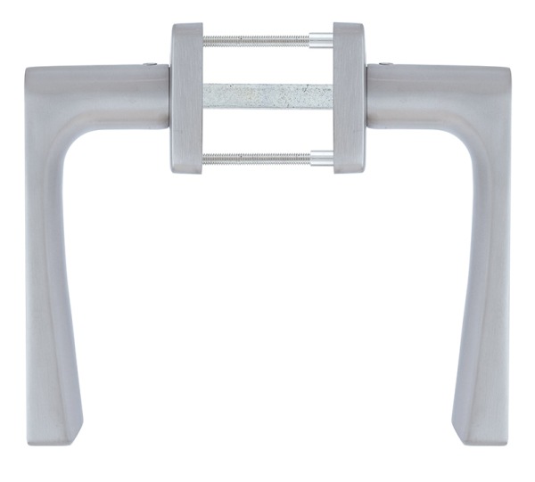 Ручки з квадратною розетою чеського виробника ROSTEX зазвичай встановлюють на двері приміщень громадського та приватного призначення. Виготовлені з нержавіючої сталі, що дає можливість їх використання при різних погодних умовах. Колір матової нержавіючої сталі має приємний холодний відтінок, що не привертає зайвої уваги. На дверному полотні виглядають мінімалістично. Завдяки якісній поворотній пружині, ручки працюють без зайвих зусиль та служитимуть довгий час. Отвори для кріплення прикриваються розетою. Зазвичай дану модель ручок встановлюють, крім міжкімнатних, ще й на вхідні двері в квартиру чи будинок. В такому випадку рекомендуємо додатково комплектувати їх протектором в аналогічному до ручок відтінку. Стержень і стяжки розраховані на товщину дверного полотна від 38 до 55 мм. За необхідності установки фурнітури на товстіші двері потрібно додатково придбати відповідний подовжуючий набір.