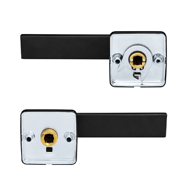 Ручки з квадратною розетою чеського виробника ROSTEX зазвичай встановлюють в міжкімнатні та вхідні двері приміщень приватного та громадського призначення. Виготовлені з нержавіючої сталі, що дає можливість їх використання при різних погодних умовах. Чорний колір максимально органічно підійде для сучасного high-tech чи лофт-дизайну. Завдяки якісній поворотній пружині, ручки працюють без зайвих зусиль та служитимуть довгий час. Отвори для кріплення прикриваються розетою. За необхідності до ручок можна придбати вороток чи накладки на серцевину в цьому ж кольорі та з відповідною формою розети.