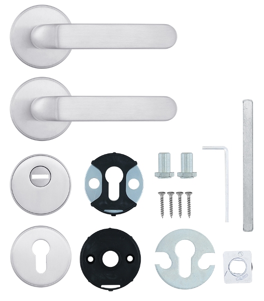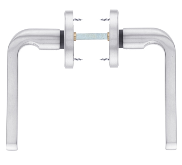 Чеські ручки з круглою розетою торгової марки ROSTEX обирають насамперед для дверей в приміщеннях приватного та громадського призначення. Їх дизайн в кольорі матової нержавіючої сталі якнайкраще підходить для цього. Ручки зручні в користуванні завдяки своїй ергономічній формі та матовій поверхні. Конструктивно виконані із нержавіючої сталі, що дає можливість їх використання при різних погодних умовах. Це дає можливість встановлювати їх не тільки на міжкімнатні чи вхідні двері в квартиру, а й на вуличні. В такому разі їх рекомендовано додатково комплектувати круглим протектором MUL-T-LOCK® SL3 в кольорі “матовий нікель” або DISEC® в аналогічному до ручок відтінку. Стержень і стяжки розраховані на товщину дверного полотна від 38 до 55 мм. За необхідності установки фурнітури на товстіші двері потрібно додатково придбати відповідний подовжуючий набір. Якісна поворотна пружина робить ручки довговічними, внаслідок чого вони розраховані на довгий термін експлуатації.