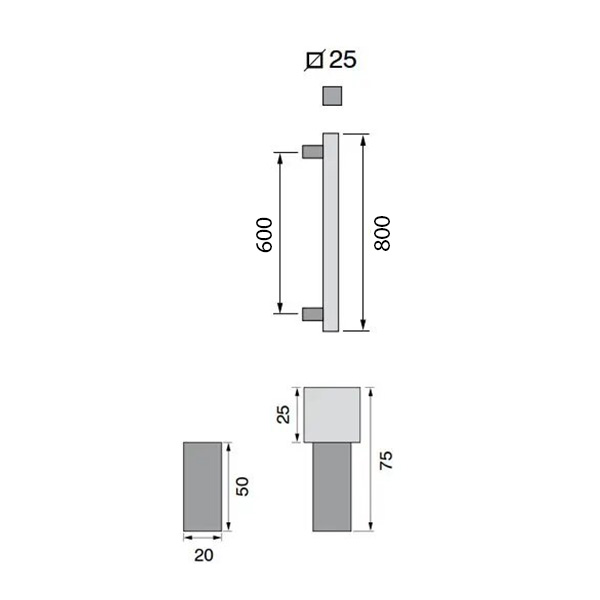 Ручка скоба FIMET 831 800/600 (половинка) нержавіюча сталь