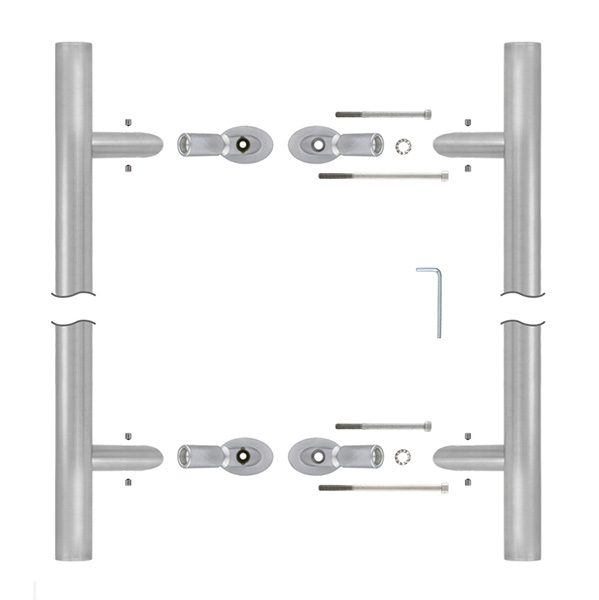 Ручки скоби чеського виробництва ROSTEX. Ідеальний вибір для інтер'єру в сучасному стилі. Щоб відчинити двері достатньо просто потягнути за скобу. Такі ручки чудово підійдуть для приміщень з великим трафіком людей, наприклад, в офіс, магазин, кафе чи ресторан. Через відсутність пружинного механізму термін експлуатації в декілька разів більший, ніж у фурнітури нажимного типу. Основним технічним критерієм при виборі є довжина ручки та відстань між кріпленнями. Важливо щоб при встановленні скоби, кріплення розмістились вище та нижче замка. Через дверне полотно робиться наскрізний отвір, куди вставляється спеціальна шпилька. На неї ручка фіксується гужонами на нижній і верхній розеті. При використанні даних ручок на вхідних дверях радимо доукомплектовувати їх протектором ROSTEX QUADRUM,ROSTEX ROTONDUM або з протектором DISEC квадратної або овальної форми в обробці матова нержавіюча сталь для захисту серцевини.