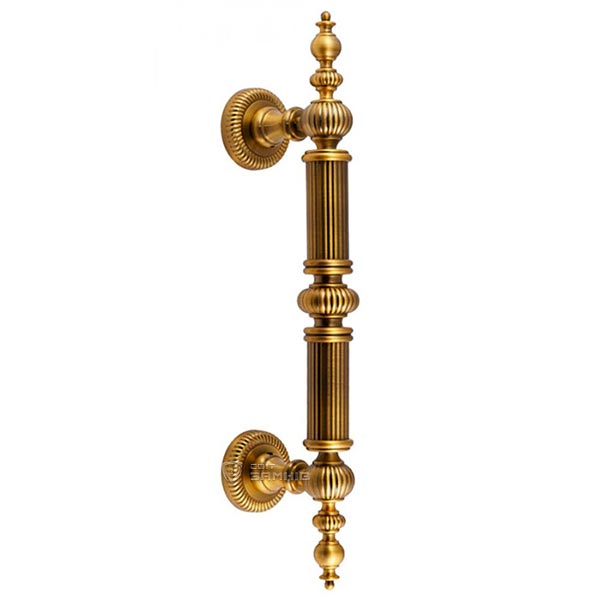 Ручка скоба торгової марки TRION. Представляє з себе елегантну дверну фурнітуру за доступну ціну. Ручки суцільнолиті із цинкового сплаву, завдяки чому вони міцні та стійкі до корозії. Таким чином їх зовнішній вигляд буде збережений від стирання понад 60 місяців. Фурнітура такого типу зручна у використанні та має тривалий термін експлуатації. Популярний кольоровий відтінок – кава - доречно поєднується з приміщенням в темних кавових відтінках. Вишуканий дизайн в класичному стилі гармонійно доповнить дверне полотно із різноманітними орнаментами та візерунками, а також довершить інтер’єр з елементами класики. Основним технічним критерієм при виборі є довжина ручки та відстань між кріпленнями. Важливо щоб при встановленні скоби, кріплення розмістились вище та нижче замка. Найчастіше ручки такого типу використовують з замком “бочкою”. Якщо ручка монтується лише одна то вона фіксується на шурупи, які прикриваються зовнішньою розетою. Якщо ж ручки ставляться дві - через дверне полотно робиться наскрізний отвір, куди вставляється спеціальна шпилька з різьбою. На неї накручується ручка і фіксується гужонами на нижній і верхній розеті.