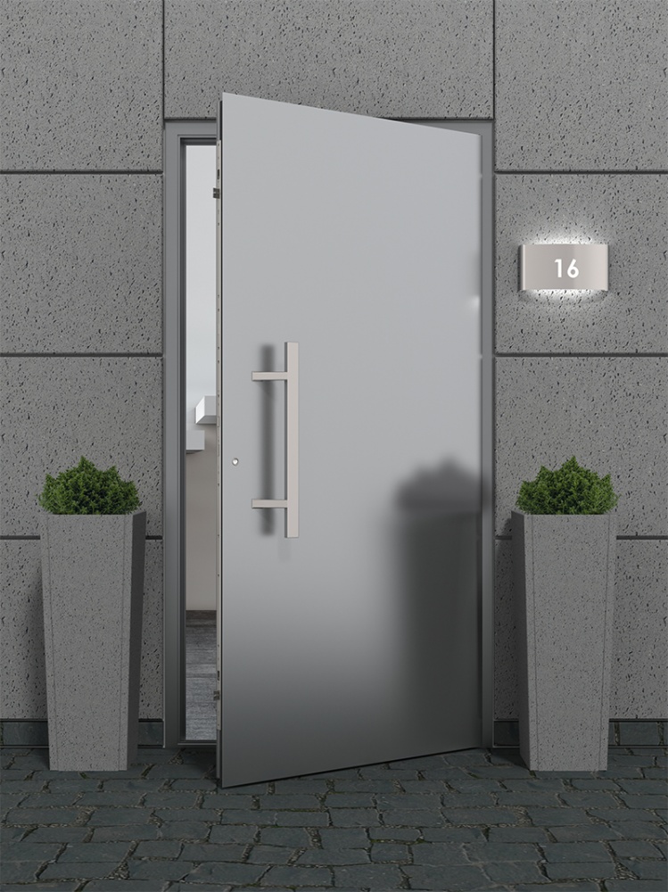 WALA Q45RX – це ручка скоба, яка встановлюється на вхідні двері з металопластику, алюмінію та скла. Виробляються із нержавіючої сталі. Ручка з такого матеріалу міцна та стійка до атмосферних явищ – вона не тускніють і не змінюють свій колір під впливом температури. Тому її можна впевнено використовувати при вуличних умовах. Саме тому вона буде вдалим вибором для використання в приміщеннях з великою прохідністю людей, наприклад, в ресторанах, готелях або магазинах. Сучасний хай-тек стиль ручки з прямими лініями гармонійно доповнить інтер’єр та дверне полотно із скляними та металевими елементами. Колір матової нержавіючої сталі прекрасно підкреслить приміщення в холодних тонах, а дверям в темних відтінках додасть трохи контрасту.