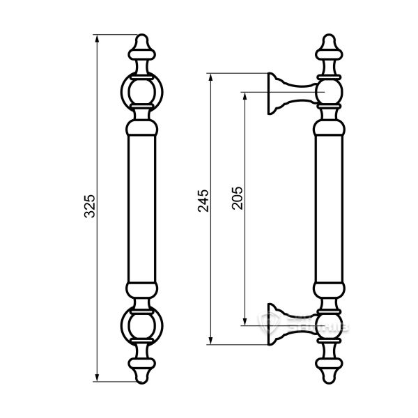 Вишукана ручки скоба турецького виробництва довершить дверне полотно в класичному стилі. Призначена для встановлення на вхідні дерев’яні або металеві двері в приміщення з великим трафіком людей. Чудово підійде для ресторану, готелю або кафе. Матеріал виготовлення - латунь. Його переваги в тому, що він міцний, важкий та приємний на дотик. Ергономічна форма ручки зручно лягає в долоню і викликає тільки приємні емоції під час користування. Вдале поєднання кольорів – сатин/антична бронза – доречно підкреслить приміщення в спокійних сіро-коричневих відтінках. дизайн ідеальний вибір для інтер’єру в класичному стилі. Основним технічним критерієм при виборі є довжина ручки та відстань між кріпленнями. Важливо щоб при встановленні скоби, кріплення розмістились вище та нижче замка. Процес кріплення на дверне полотно здійснюється за рахунок наскрізних отворів, куди вставляється спеціальна шпилька з різьбою. На неї накручується ручка і фіксується гужонами на нижній і верхній розеті. Дану модель можна використовувати як поштучно, так і парно.