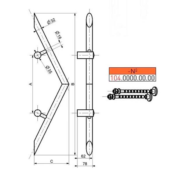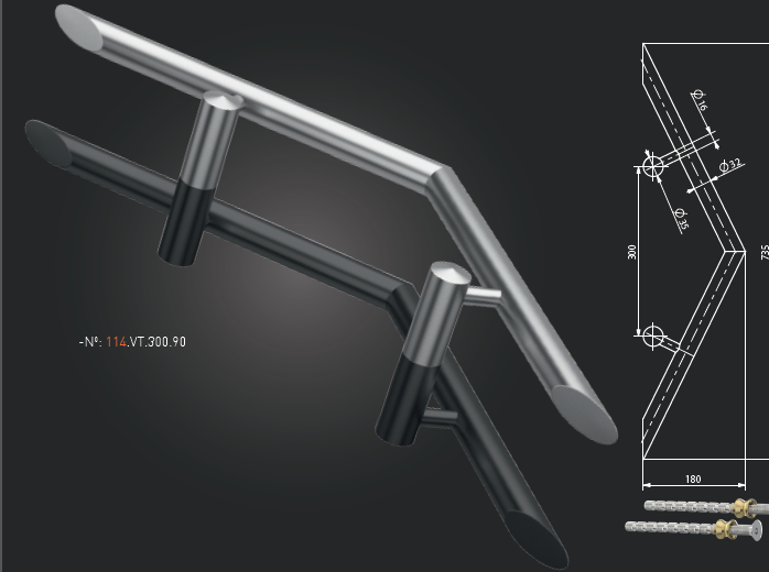 Ручки скоби MEDOS VT 730/300.90 кутові (комплект) нержавіюча сталь