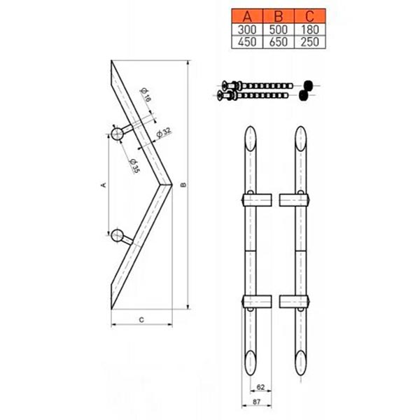 Ручки скоби MEDOS VT 650/500.90 кутові (комплект) нержавіюча сталь
