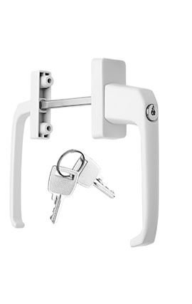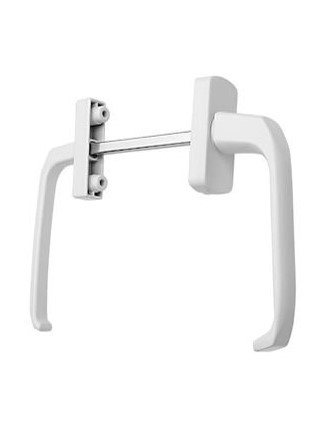 Балконна ручка УКР біла має функцію блокування дверей. В зачиненому положені є можливість активувати кнопку замикання, яка знаходиться у ключовому отворі. При натисканні на кнопку без ключа двері блокуються. Відімкнути та розблокувати двері можна тільки за допомогою ключа.