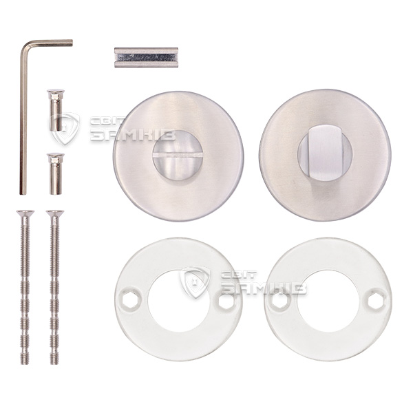 Колір матової нержавіючої сталі чудово підійде для світлого інтер’єру. Зручно та легко закривається зсередини, а ззовні є можливість аварійного відкриття. Підбирається під конкретну модель ручки SHERLOCK з круглою розетою.