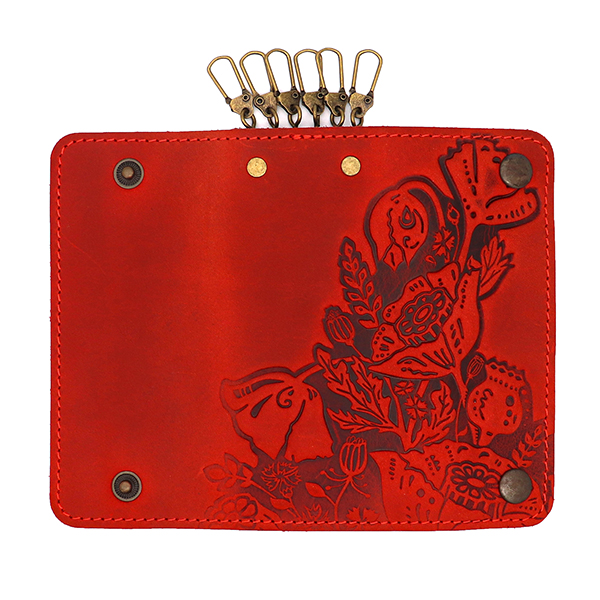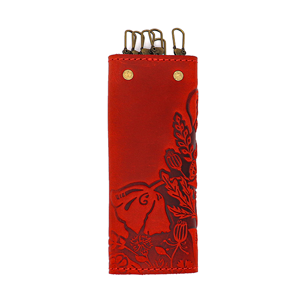 Ключниця МАКИ шкіряна 14 см червона