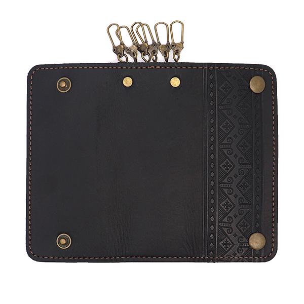 Ключниця СМУЖКА (вишивка) шкіряна 14 см чорна