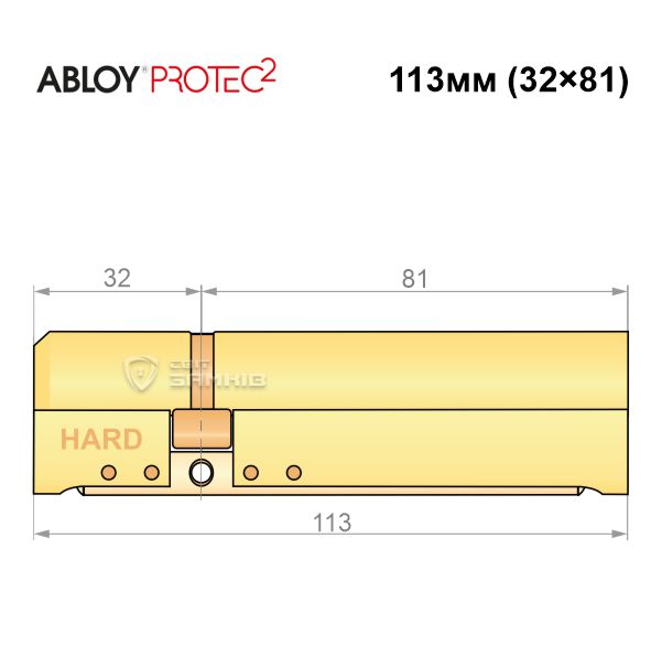 Купити циліндр ABLOY Protec2 113 (32H*81) (H - гартована сторона) латунь полірована в роздріб і гуртом можна на нашому сайті.