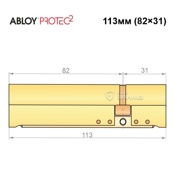 Купити циліндр ABLOY Protec2 113 (82H*31) (H - гартована сторона) латунь полірована в роздріб і гуртом можна на нашому сайті.