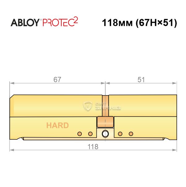 Купити циліндр ABLOY Protec2 118 (67H*51) (H - гартована сторона) латунь полірована в роздріб і гуртом можна на нашому сайті.