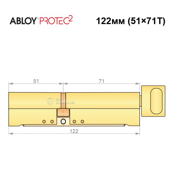 Купити циліндр ABLOY Protec2 122T (51x71T) латунь полірована в роздріб і гуртом можна на нашому сайті.