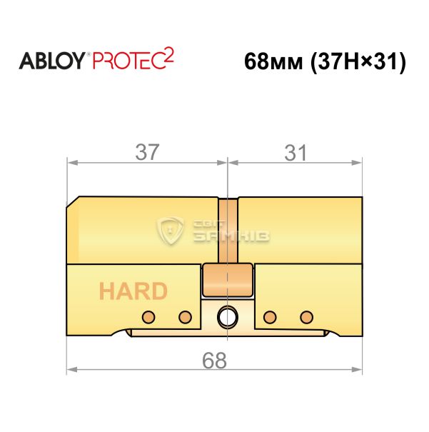 Купити циліндр ABLOY Protec2 68 (37H*31) (H - гартована сторона) латунь полірована в роздріб і гуртом можна на нашому сайті.