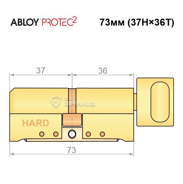Купити циліндр ABLOY Protec2 73T (37H*36T) (H - гартована сторона) латунь полірована в роздріб і гуртом можна на нашому сайті.