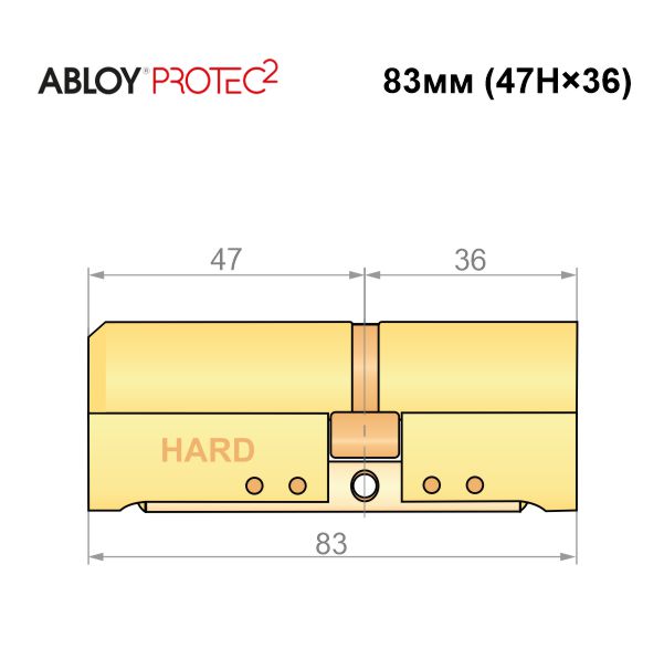 Купити циліндр ABLOY Protec2 83 (47H*36) (H - гартована сторона) латунь полірована в роздріб і гуртом можна на нашому сайті.