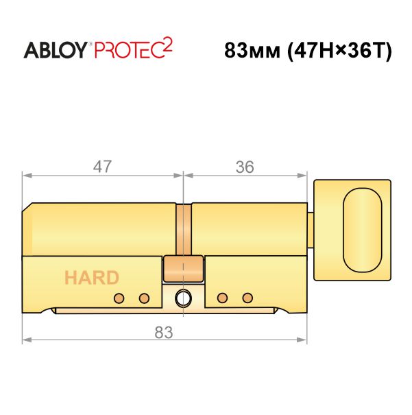 Купити циліндр ABLOY Protec2 83T (47H*36T) (H - гартована сторона) латунь полірована в роздріб і гуртом можна на нашому сайті.