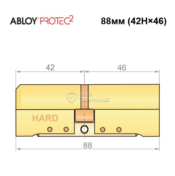 Купити циліндр ABLOY Protec2 88 (42H*46) (H - гартована сторона) латунь полірована в роздріб і гуртом можна на нашому сайті.