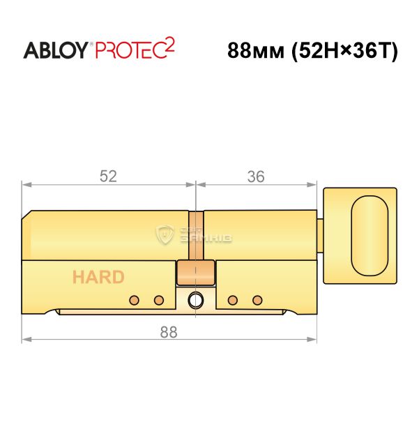 Купити циліндр ABLOY Protec2 88T (52H*36T) (H - гартована сторона) латунь полірована в роздріб і гуртом можна на нашому сайті.