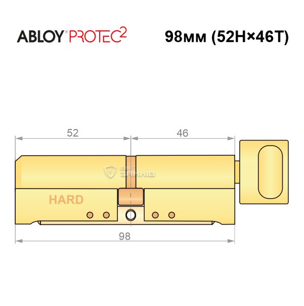 Купити циліндр ABLOY Protec2 98T (52H*46T) (H - гартована сторона) латунь полірована в роздріб і гуртом можна на нашому сайті.