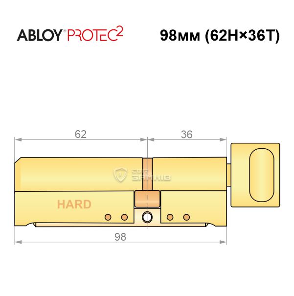 Купити циліндр ABLOY Protec2 98T (62H*36T) (H - гартована сторона) латунь полірована в роздріб і гуртом можна на нашому сайті.