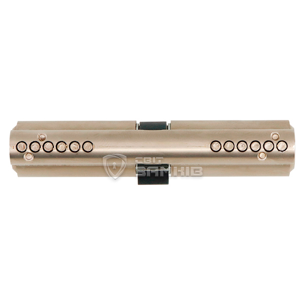 В корпусі циліндру вмонтовані сталеві гартовані штифти. Вони захищають від висвердлювання та фрезерування блокуючих пінів і опорних пружин. При спробі просвердлити отвір, свердло буде вести в бік або воно зламається. Але ми все одно рекомендуємо при встановленні на вхідних дверях використовувати врізну броненакладку, це підсилить конструкцію та значно ускладнить будь-які маніпуляції із циліндром.