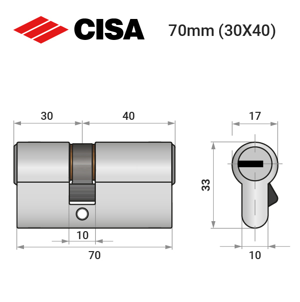 Опис Циліндр CISA ASIX P8 70 (30*40) нікель матовий 5 ключів