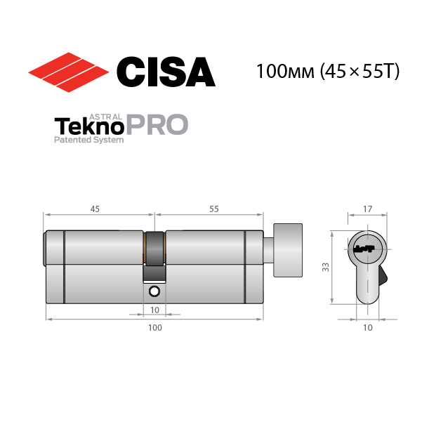 Купити циліндр CISA Astral Tekno PRO 100Т (45*55Т) нікель матовий в роздріб і гуртом можна на нашому сайті.