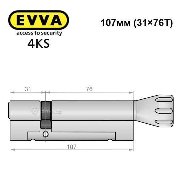 - Циліндр EVVA 4KS 107T (31*76T) нікель сатин 5 ключів ⭐