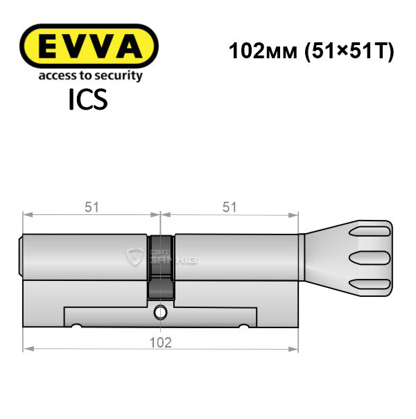 - Циліндр EVVA ICS 102T (51*51T) нікель сатин ⭐