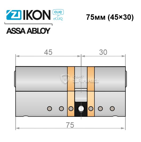 - Циліндр IKON e-CLIQ 75 (45i*30) нікель сатин ⭐