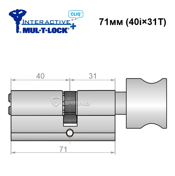 Опис Циліндр MUL-T-LOCK MTL600/Interactive+ CLIQ 71T (40i*31T) нікель сатин