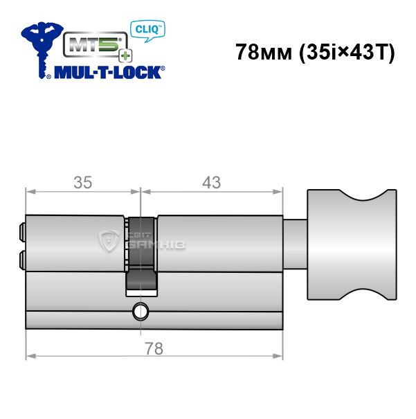 Купити циліндр циліндр MUL-T-LOCK MT5+ CLIQ 78T (35i*43T) нікель сатинв роздріб і гуртом можна на нашому сайті.