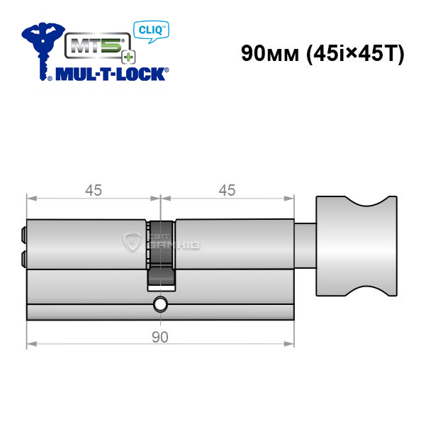Купити циліндр циліндр MUL-T-LOCK MT5+ CLIQ 90T (45i*45T) нікель сатинв роздріб і гуртом можна на нашому сайті.