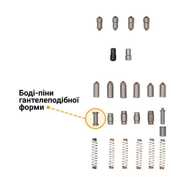 - Захист від відмичок – боді-пін спеціальної гантелеподібної форми.