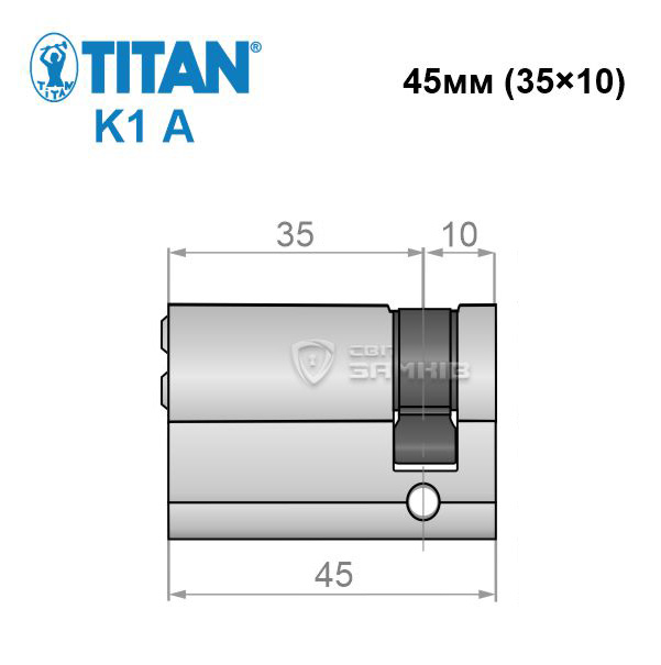 Циліндр половинка TITAN K1 A 45 (35*10) нікель сатин 5 ключів