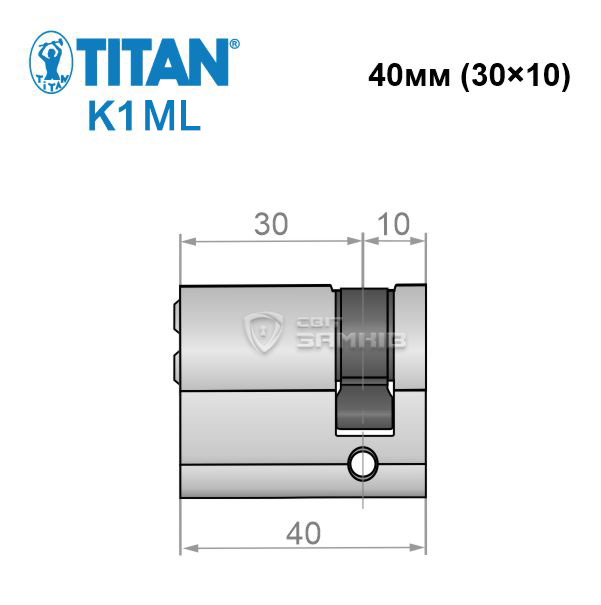 Циліндр половинка TITAN K1 ML 40 (30*10) нікель сатин 3 ключа