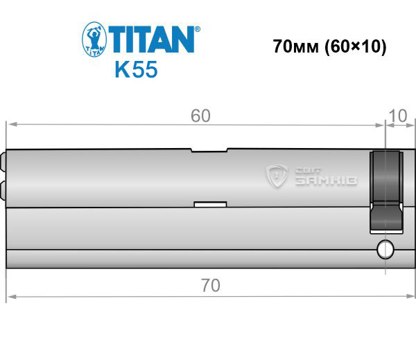 Купити циліндр половинка TITAN K55 70 (60*10) нікель 3+1 ключів в роздріб і гуртом можна на нашому сайті.