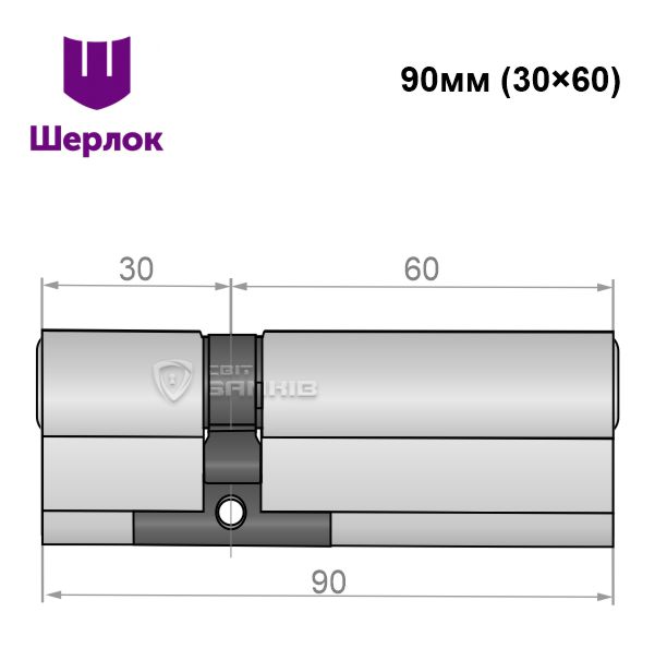 Опис Циліндр SHERLOCK HK 90 (30*60) нікель сатин