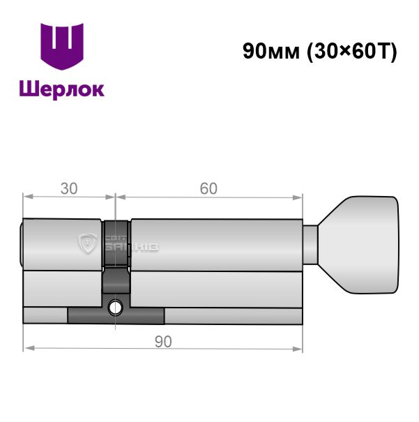 Циліндр SHERLOCK HK 90T (30*60T) нікель сатин