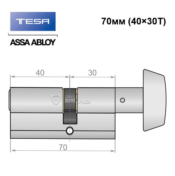 Циліндр TESA TE5 70T (40*30T) нікель сатин 5 ключів