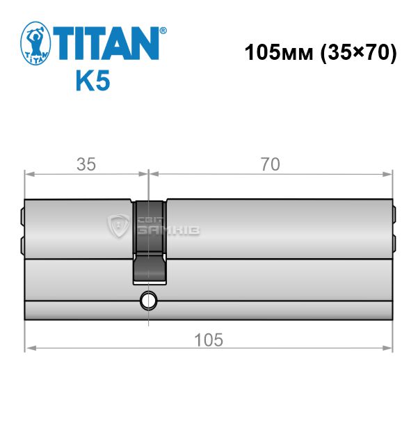 - Циліндр TITAN K5 105 (35*70) нікель сатин ⭐
