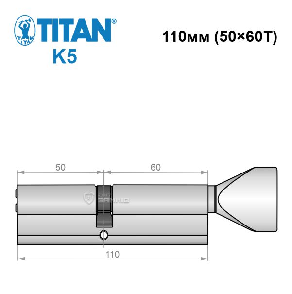 - Циліндр TITAN K5 110T (50*60T) нікель сатин ⭐