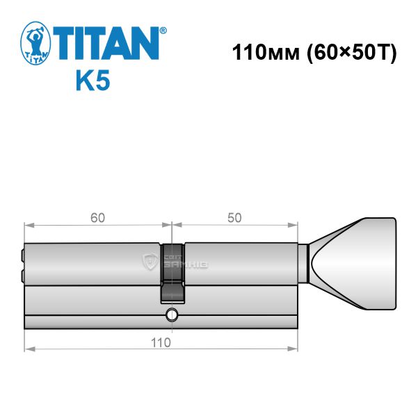 - Циліндр TITAN K5 110T (60*50T) нікель сатин ⭐
