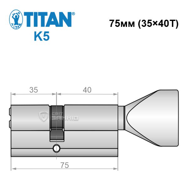 - Циліндр TITAN K5 75T (35*40T) нікель сатин ⭐