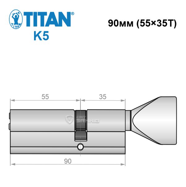 - Циліндр TITAN K5 90T (55*35T) нікель сатин ⭐