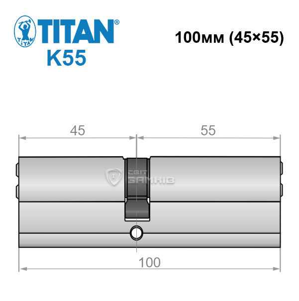 - Циліндр TITAN K55 100 (45*55) нікель сатин ⭐
