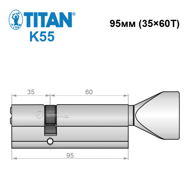 - Циліндр TITAN K55 95T (35*60T) нікель сатин ⭐