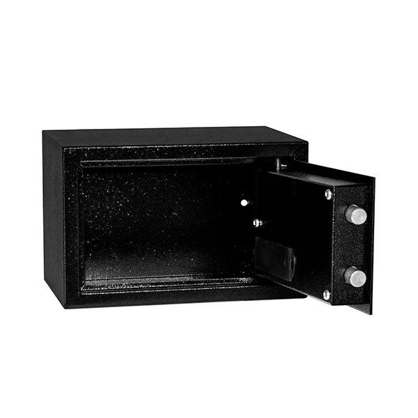 Корпус у вигляді зварної конструкції і двері сейфа виготовлені зі сталі. Їхня товщина складає 1,2 мм та 3 мм відповідно. Сейф зачиняється електронним кодовим замком, який керує двома ригелями. Для захисту від вандального зламу завіси мають внутрішнє виконання. В чорному кольорі він відмінно доповнить будь-яке сучасне приміщення та не буде виділятись.